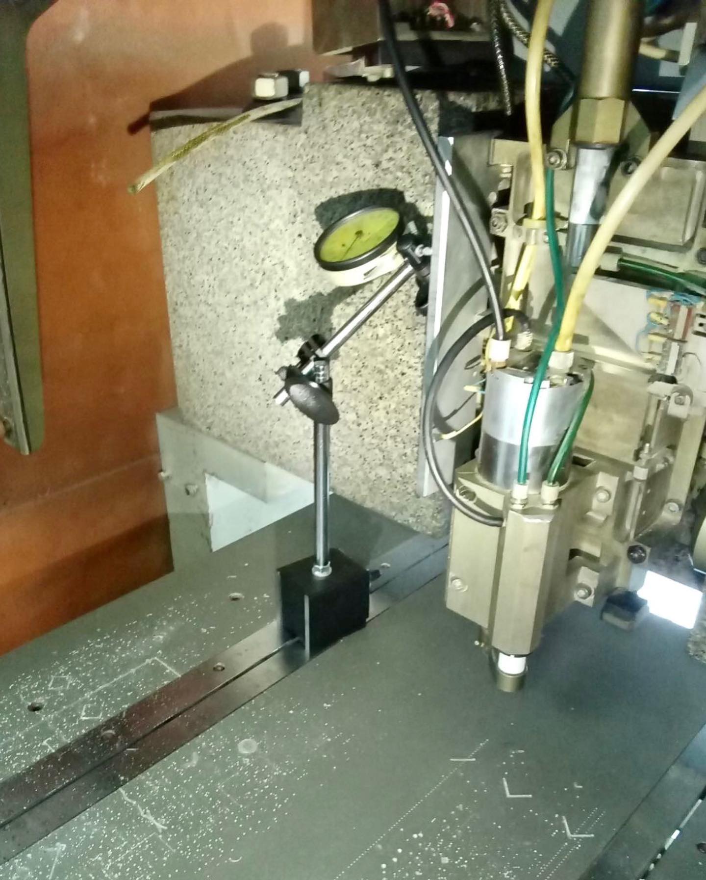 - зазоры воздушных подушек осей X/Y вне допусков, а индуктосин позиционирования оси Z первого шпинделя имеет ошибку измерения за счёт неверно выставленных в С-образном пазу аэропланирующих направляющих оси$